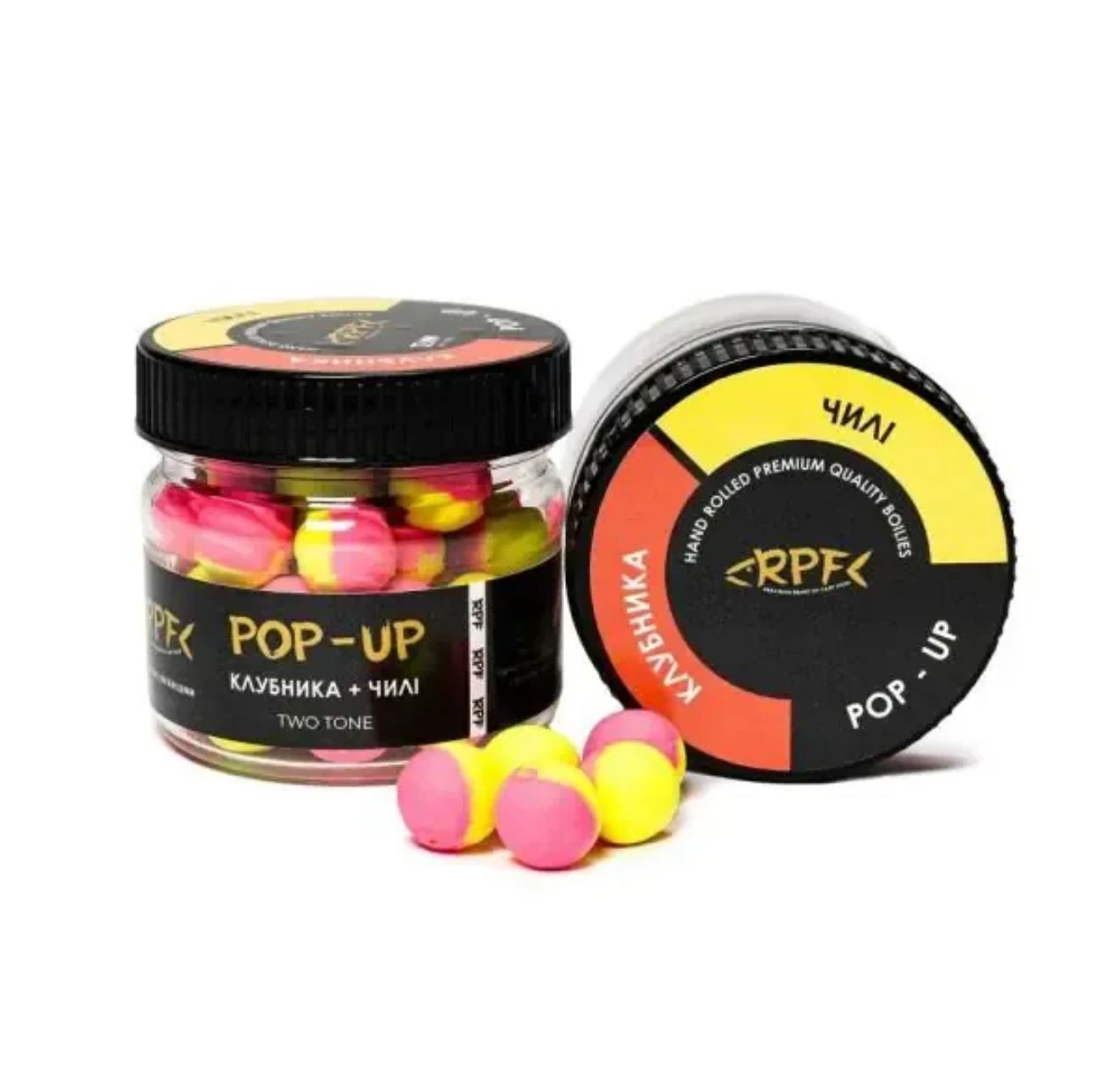 Бойли RPF Поп-ап Two Tone Двоколірні Ø6 мм - Плаваючі - ПЕТ-банку 25 г - Полуниця+Чилі