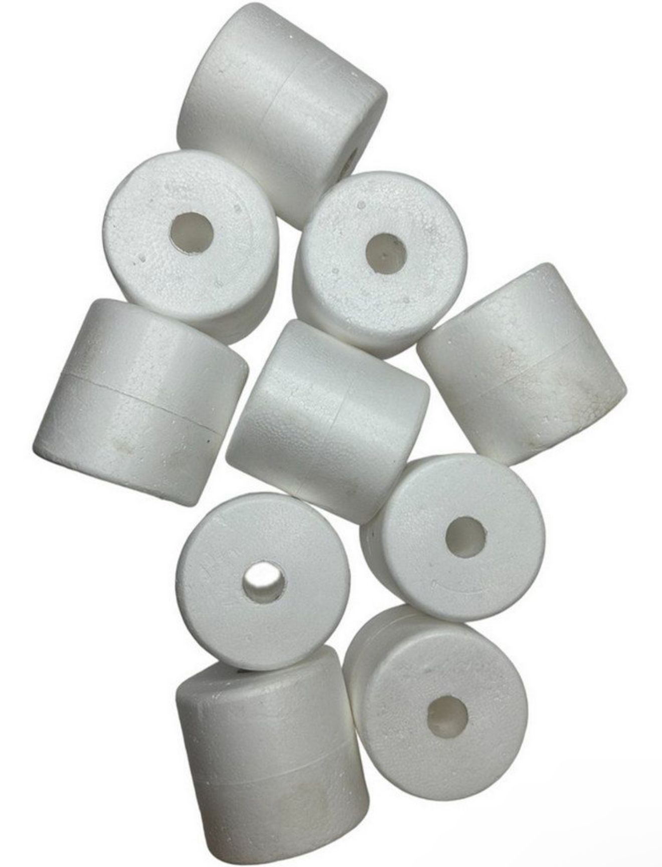 В асортименті поплавки різних типорозмірів, а також двох кольорів. Найбільш затребуваними кольорами є «білий» та «чорний» для ремонту та виготовлення мереж. Мережевий поплавець із полістиролу підходить для одностінних, тристінних, донних, рамових, плавних та інших конструкцій рибальських мереж.