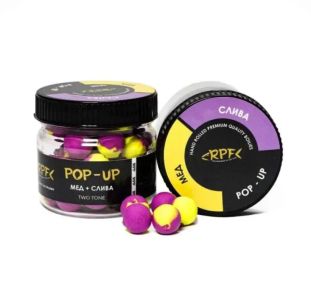 Бойли RPF Поп-ап Two Tone Двоколірні Ø10 мм - Плаваючі - ПЕТ-банку 25 г - Мед+Слива