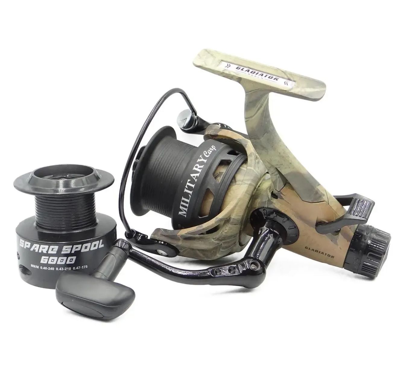 Нова ексклюзивна коропова котушка Gladiator Military Carp. Котушка в оригінальному камуфляжному дизайні з повним набором всіх характеристик тягової коропової моделі.