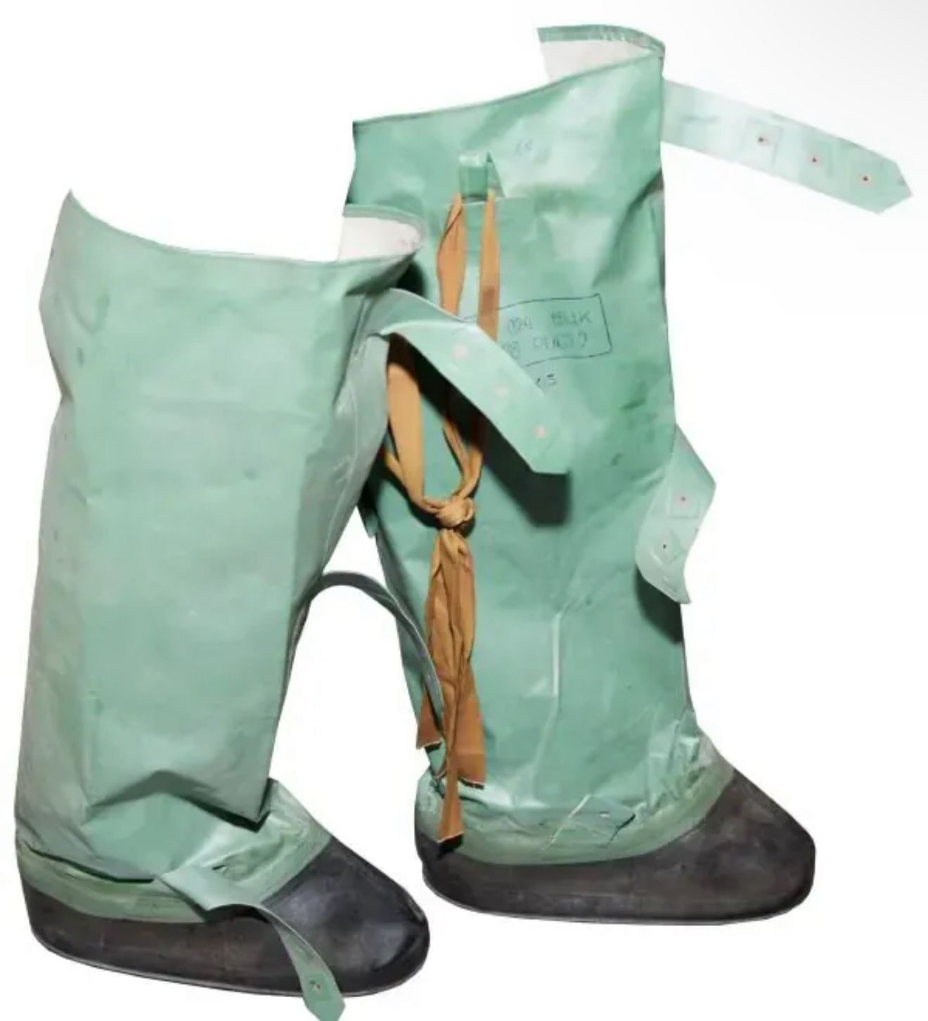 Панчохи захисного костюма також звані бахилами. Вироби виготовлені із спеціальної прогумованої тканини захисного (зеленого) кольору. Підошва панчіх забезпечена додатковим прошарком з темної гуми з метою ущільнення та збільшення зносостійкості. Бахили надягають поверх взуття та одягу. Фіксуються на нозі завдяки спеціальним ременям, які кріпляться петлями (шпеньками та ляльками).