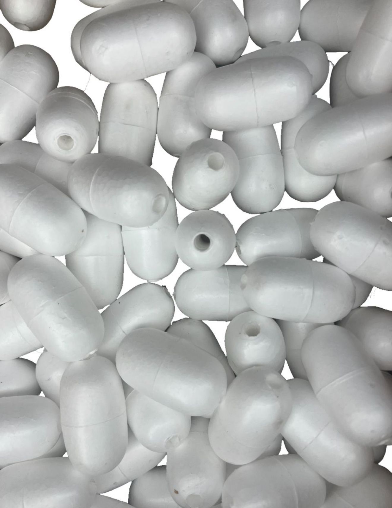 В асортименті поплавки різних типорозмірів, а також двох кольорів. Найбільш затребуваними кольорами є «білий» та «чорний» для ремонту та виготовлення мереж. Мережевий поплавець із полістиролу підходить для одностінних, тристінних, донних, рамових, плавних та інших конструкцій рибальських мереж.