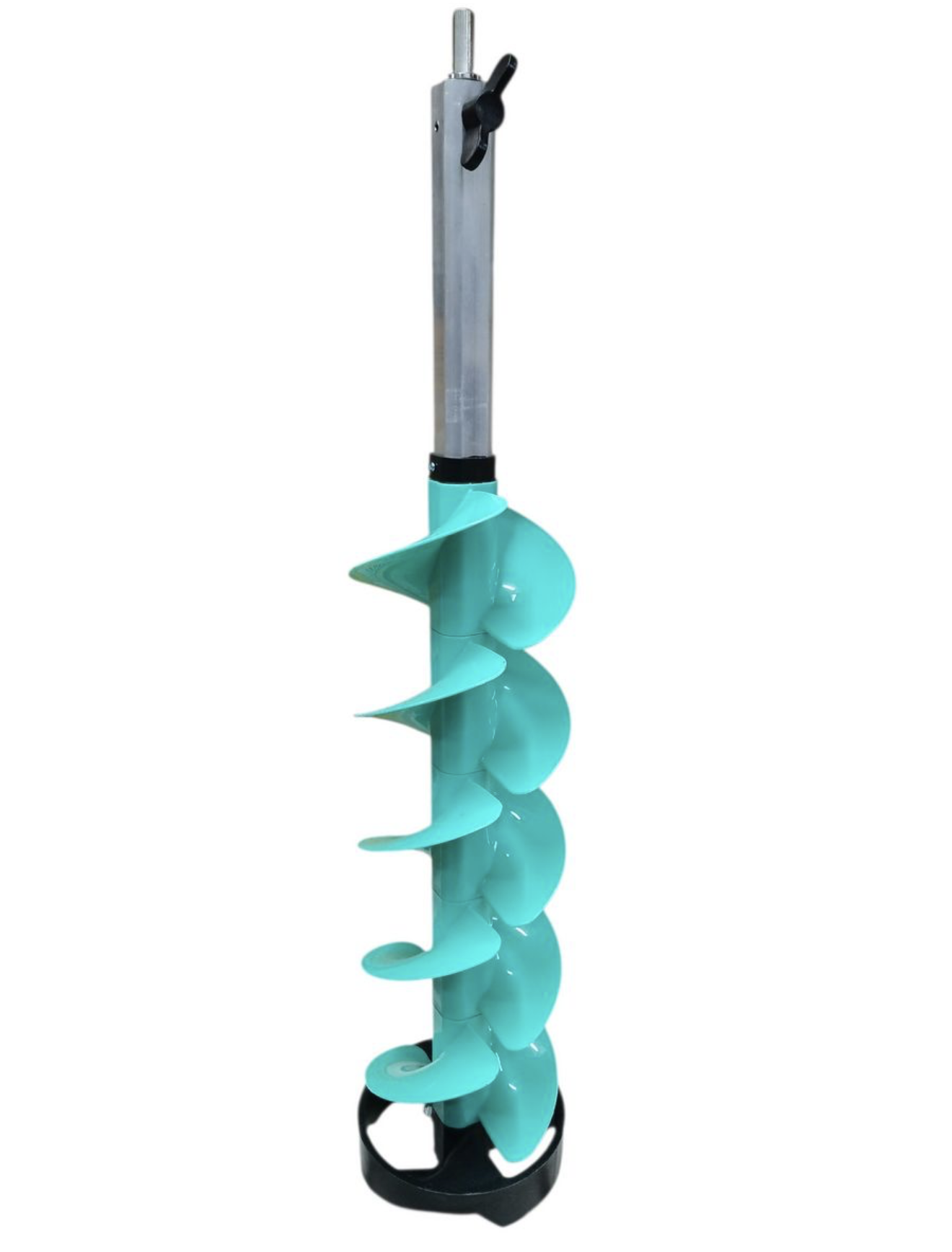 Модель виготовлена з міцного морозостійкого пластику, що значно зменшує загальну вагу шнека та полегшує процес буріння. Використання шуруповерта як приводу суттєво прискорює роботу, знижує навантаження на руки та забезпечує стабільне, рівне формування лунки.