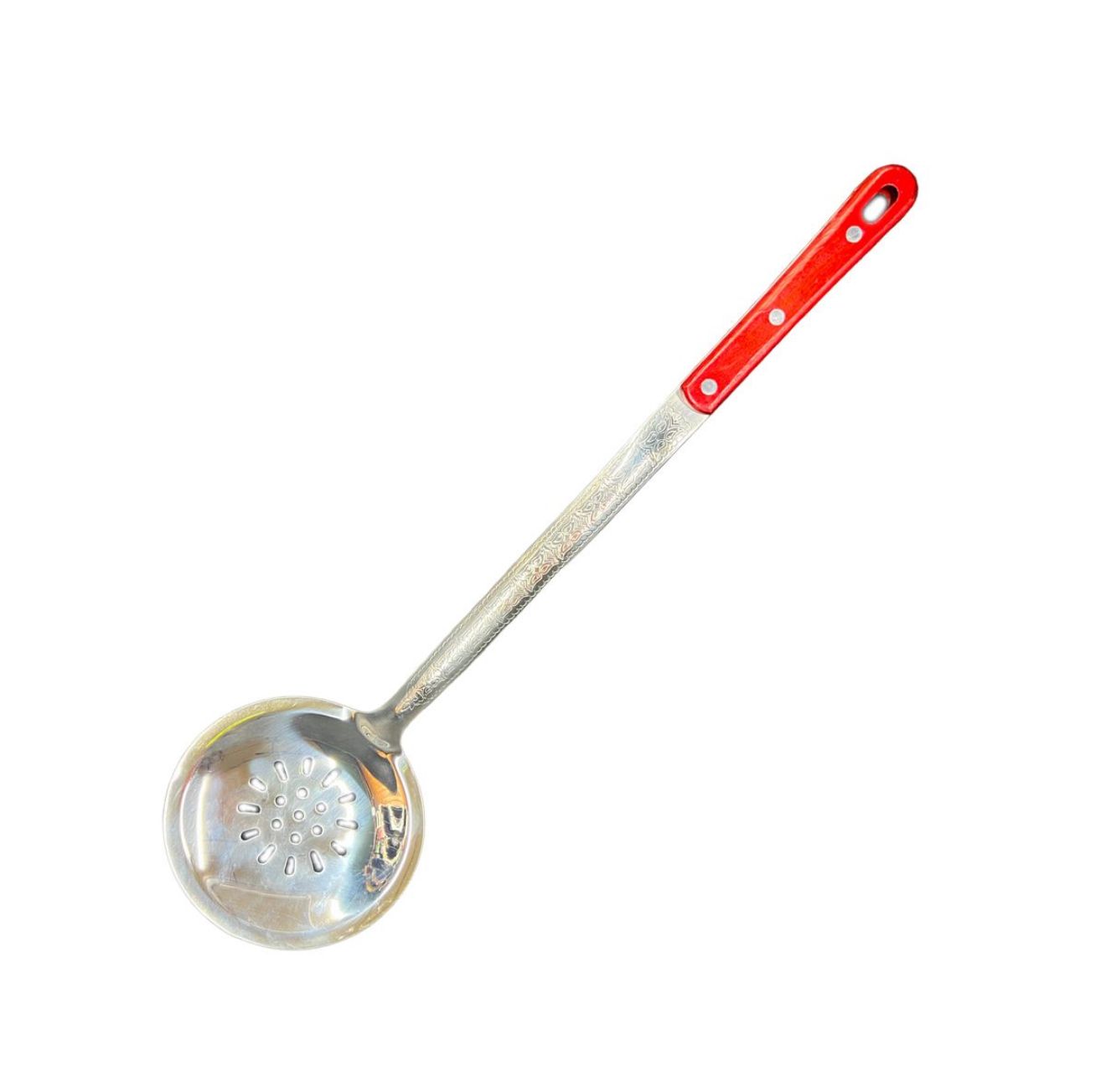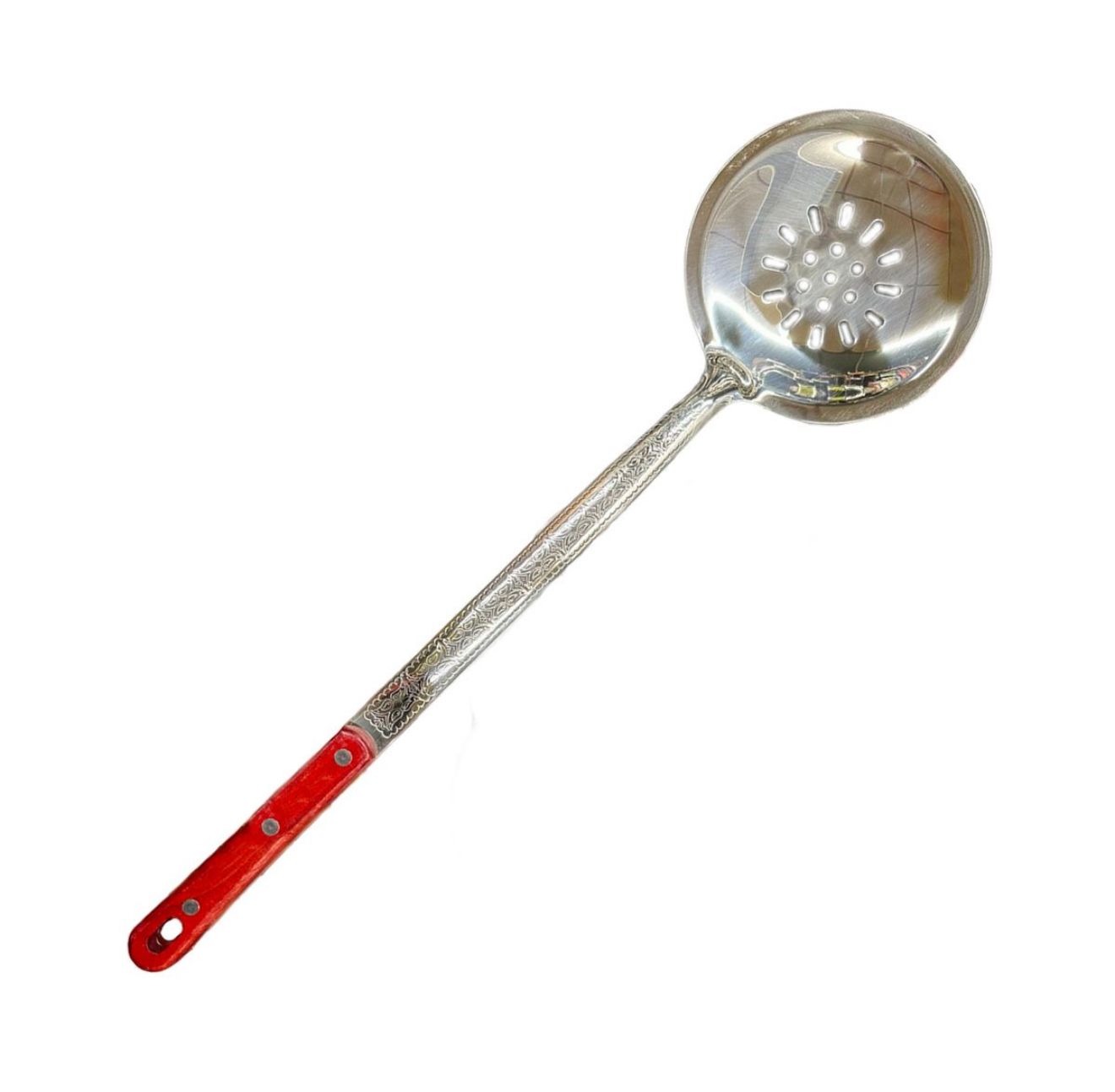 Виконано шумівку з харчової нержавіючої сталі товщиною 2,5 мм, ручку з дерева. Шумівка узбецька декорована традиційним узбецьким візерунком.