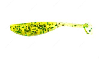 Цей компактний віброхвіст під час проводки не лише активно працює хвостиком, а й завдяки плоскій спинці похитується боками, що особливо помітно при використанні шарнірного монтажу. Специфічна форма робить його зручним для оснащення офсетним гачком — жало щільно прилягає до спинки, зменшуючи кількість зачепів у коряжнику.