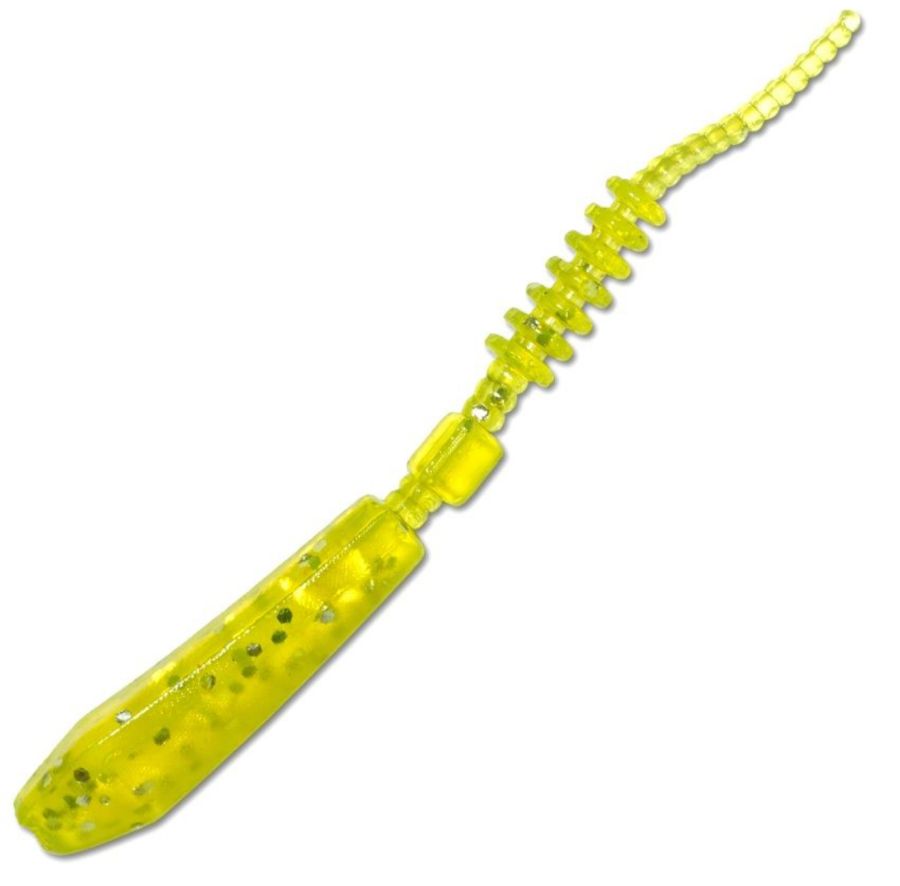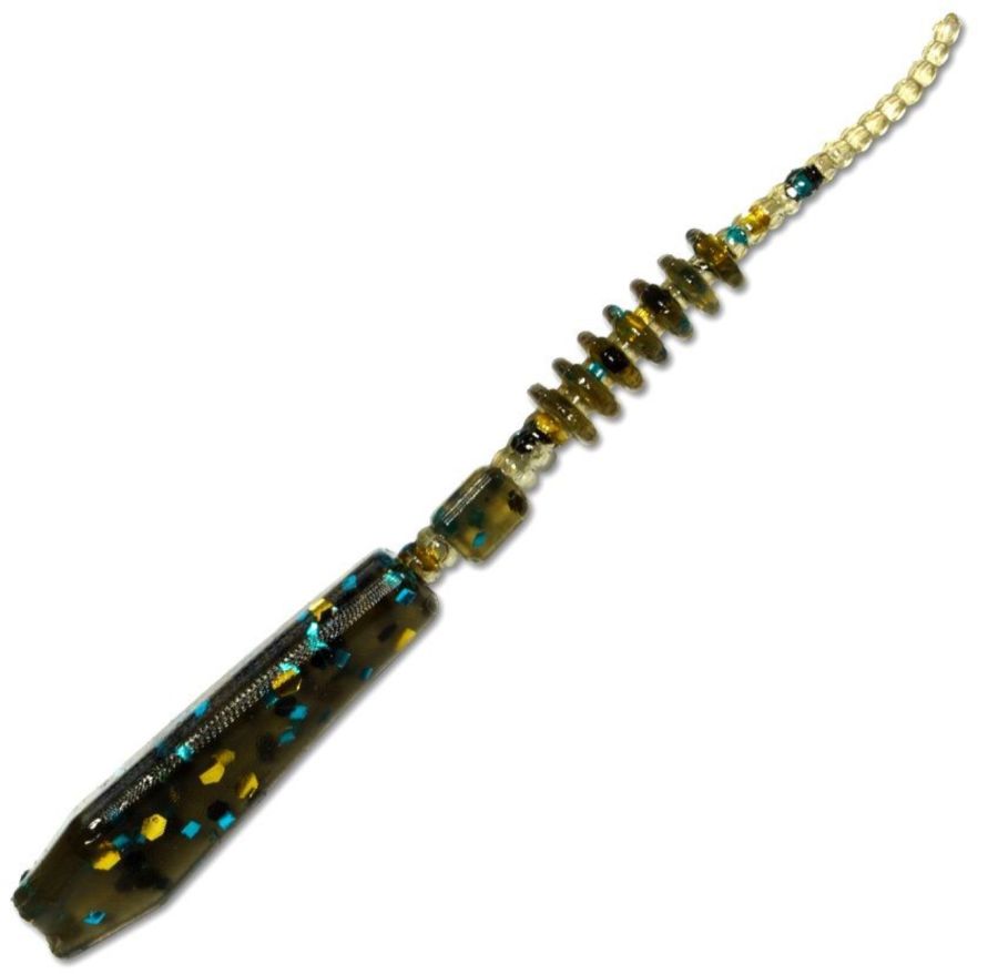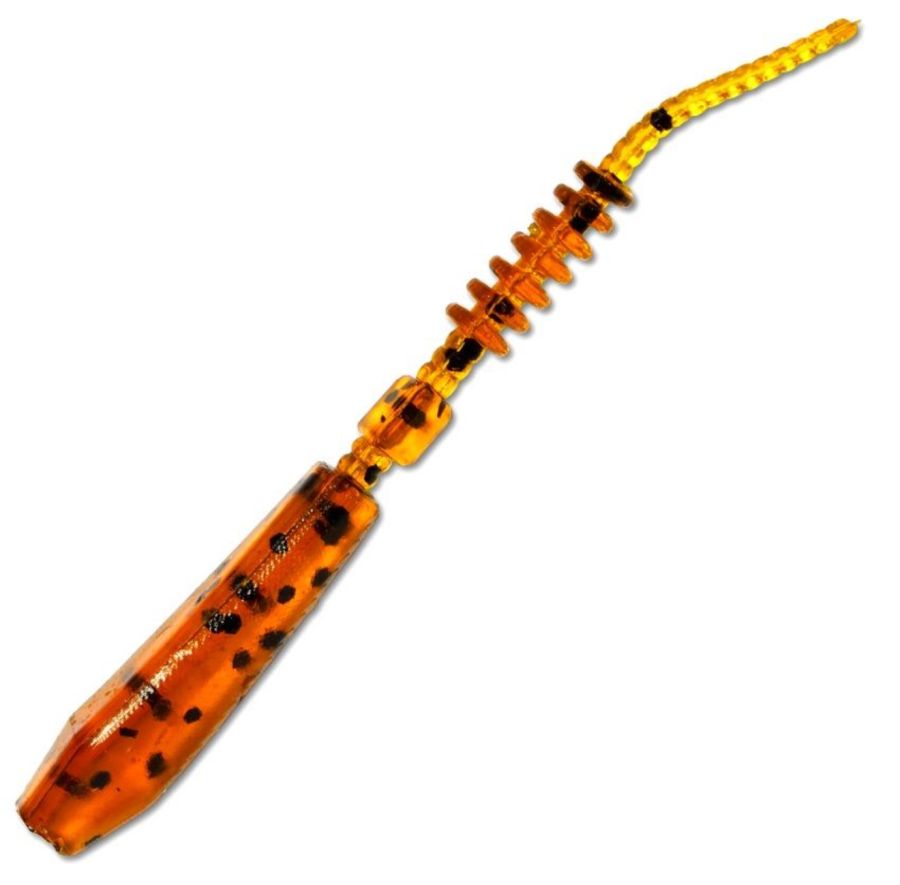 За формою нагадує черв’яка або пуголовка з масивною головною частиною та витонченим ребристим тілом, поділеним на сегменти різної товщини. Така конструкція створює привабливі коливання навіть за мінімальних рухів вудилища чи котушки.