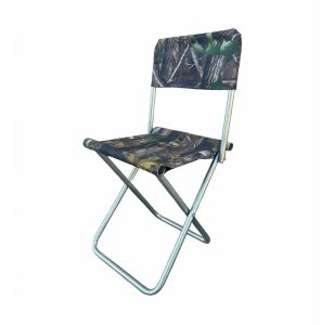 Конструкція з міцної сталевої труби забезпечує надійність і стійкість. Стілець швидко складається й розкладається, не займаючи багато місця під час транспортування. Водовідштовхувальна тканина камуфляжного кольору додає практичності та довговічності.