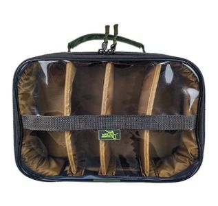 Практична та зручна сумка для рибальських аксесуарів, оснащена прозорою верхньою частиною для швидкого візуального контролю вмісту. Ідеально підходить для транспортування та зберігання насадок, бустерів, дипів, бойлів та інших елементів рибальського оснащення.