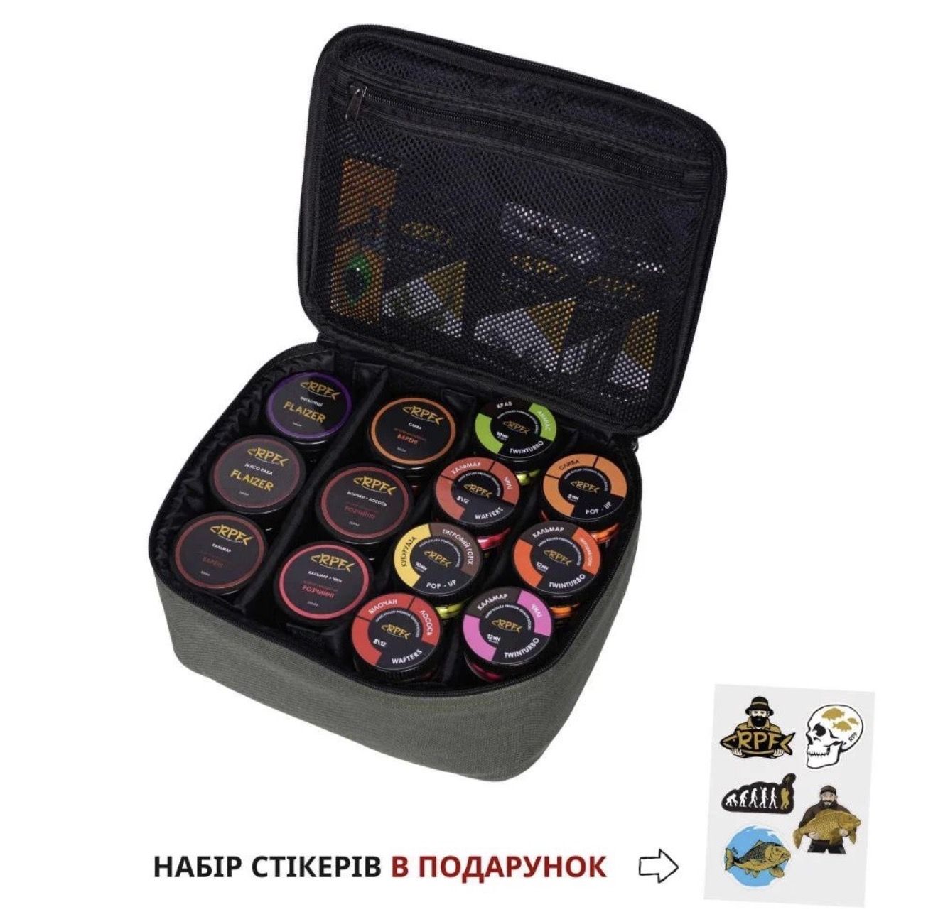 Ця сумка ідеальна для зберігання та транспортування насадок, а додатковий набір стікерів стане приємним бонусом для організації вашого риболовного спорядження.