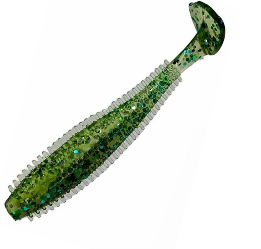 Spikey Shad виготовляється з дуже м’якого, маслянистого силікону, який нагадує їстівну гуму. Він не тільки приємний на дотик, а й має максимальну гнучкість, що дозволяє приманці природно рухатися у воді при будь-якій проводці.