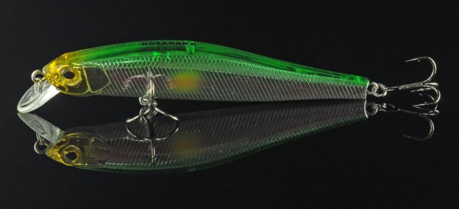 Приманка обладнана системою дальнього забросу та балансування, що дозволяє обловлювати великі ділянки водойми швидким темпом. Шумова конструкція додатково привертає рибу на відстані. Kosadaka пропонує широкий вибір кольорів — від натуральних до кислотних і навіть з імітацією молодого лосося чи прозорими корпусами.